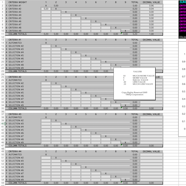 Prioritization Matrix, Criteria Matrix Full Analytical Model